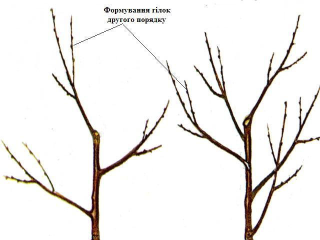 На основних скелетних гілках в подальшому формують гілки другого порядку та напівскелетні і обростаючі.